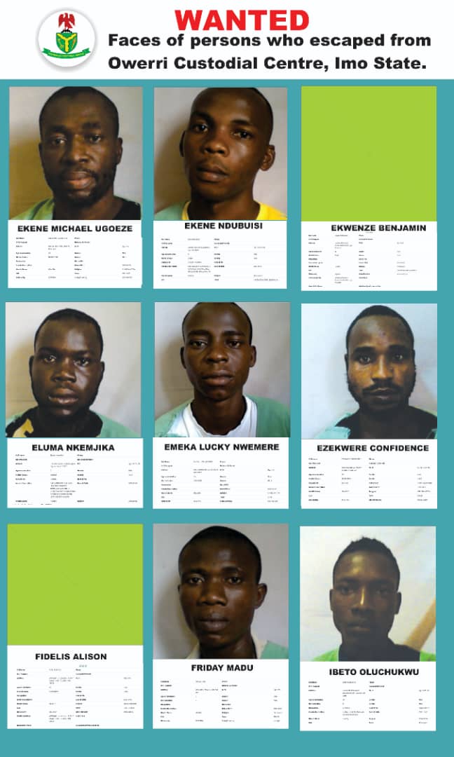 “Faces of persons who escaped from Owerri Custodial Centre, Imo State.