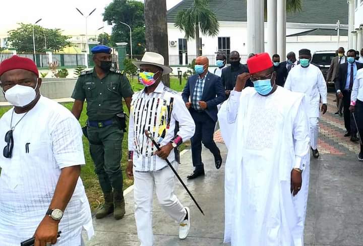 Presenting a communiquè on behalf of the forum, Chairman of the Forum and Governor of Ebonyi State, Engr. Dave Umahi who was flanked by Anambra State Governor, Chief Willie Obiano, Governor of Enugu State, Rt. Hon. Ifeanyi Ugwuanyi, the host Governor, Senator Hope Uzodinma, and his Abia State counterpart, Dr. Okezie Ikpeazu, condemned terrorism, banditry, burning of police stations and other violent attacks across the country and South East region in particular.