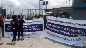 Residents of Port Harcourt have taken to the streets to protest against the outrageous billing levied on them by the Port Harcourt Electrical Distribution Company, PHED.