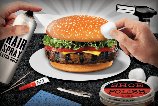 - Commercials use inedible products to make food look more appealing during the advertisement.