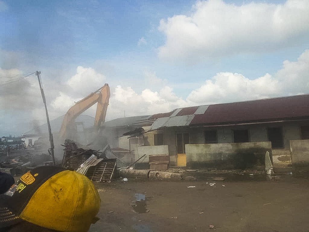 The government of Rivers State on Wednesday began the demolition of Nkpogu shanties as ordered by Governor Nyesom Wike, who said that he had received credible intelligence report that some criminal network involved in the counterfeiting of bottled water, carbonated soft drinks, and acholic beverages were operating in the area.