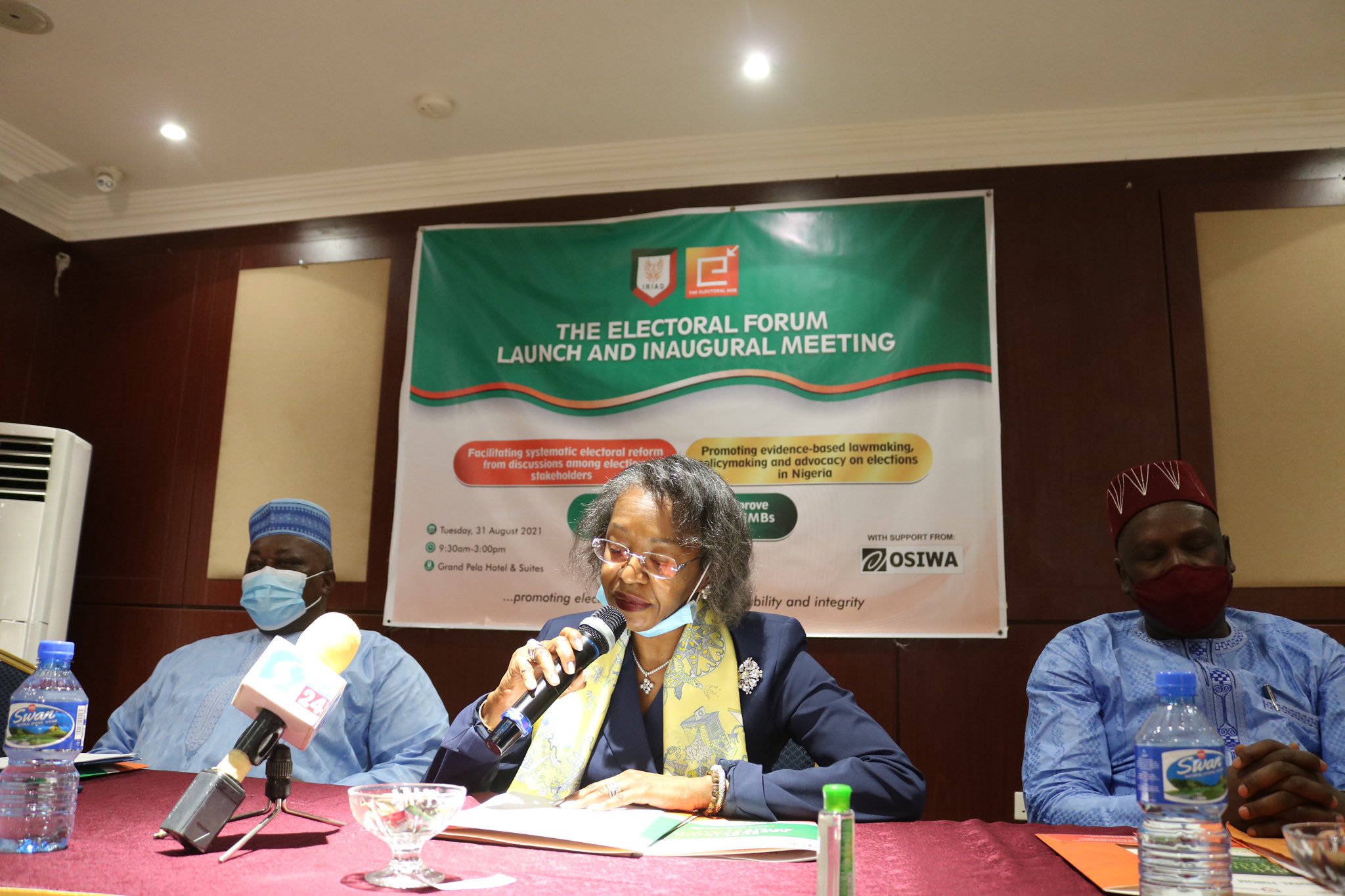 After the keynote address was given, the Forum was formally launched by Professor Mahmood Yakubu, represented by Barrister May Agbamuche-Mbu. He expressed hope that the Forum would enrich our knowledge and enhance our understanding of the electoral process in Nigeria.