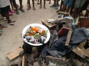 An Eye Witness, Ununuma Bidemi Edward-Odoi said the angry youths tried all they could to burn down his building in order to set victims in chains free but the building couldn’t catch fire so they broke it down instead.