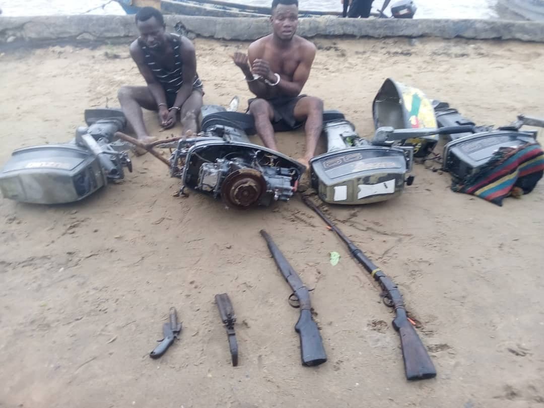 The Akwa Ibom State Police Command has arrested two suspected sea pirates, recovering firearms and four stolen engine boats.