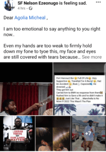 Mr Michael, a father of one and founder of Port Harcourt Plughouse was involved in the boat accident while returning from a a wedding.