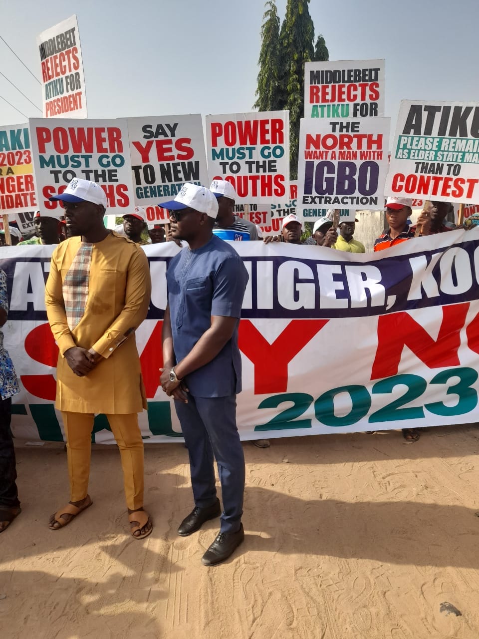 Members of the group brandished placards with various inscriptions, including: “Middle Belt rejects Atiku for President; “Turaki leave 2023 for a younger candidate and North wants a man with Igbo extraction” among others.
