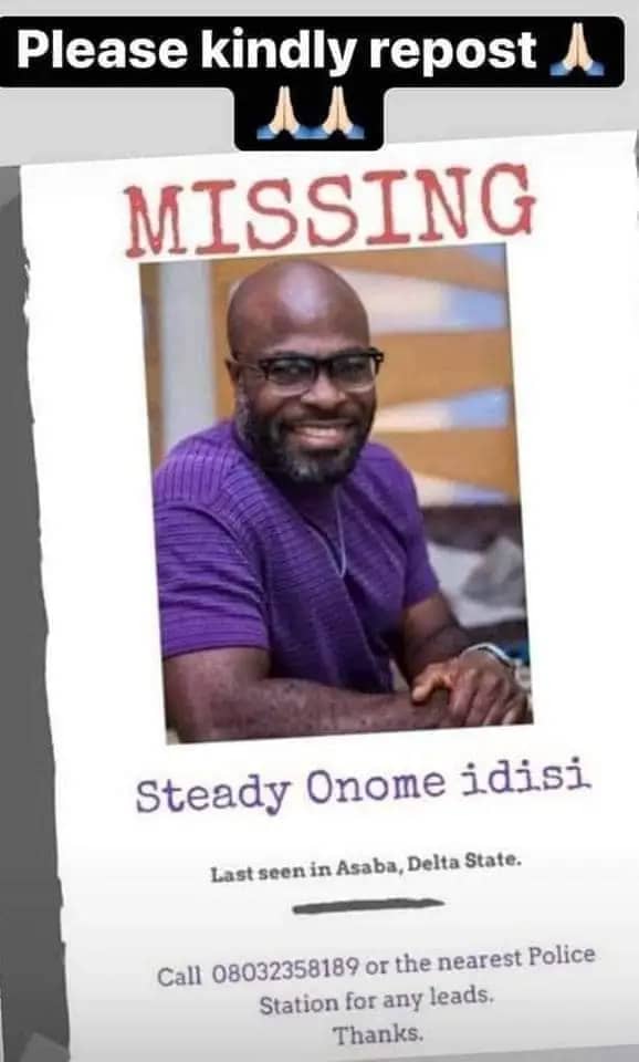 He was reported to have attended a Rotary event with his friend at Asaba, Delta State and went missing on his way back to Port Harcourt.