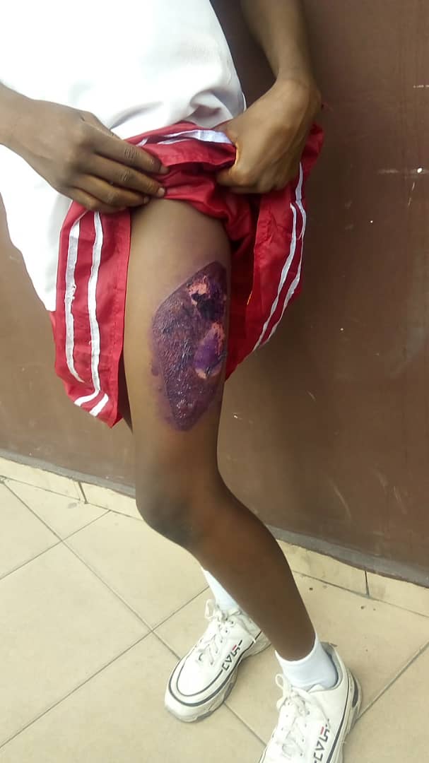 On her part, Step Elder sister to the victim Gold George-Tete, said she inflicted the injury on her younger sister to teach her a lesson that will make her to stop stealing.