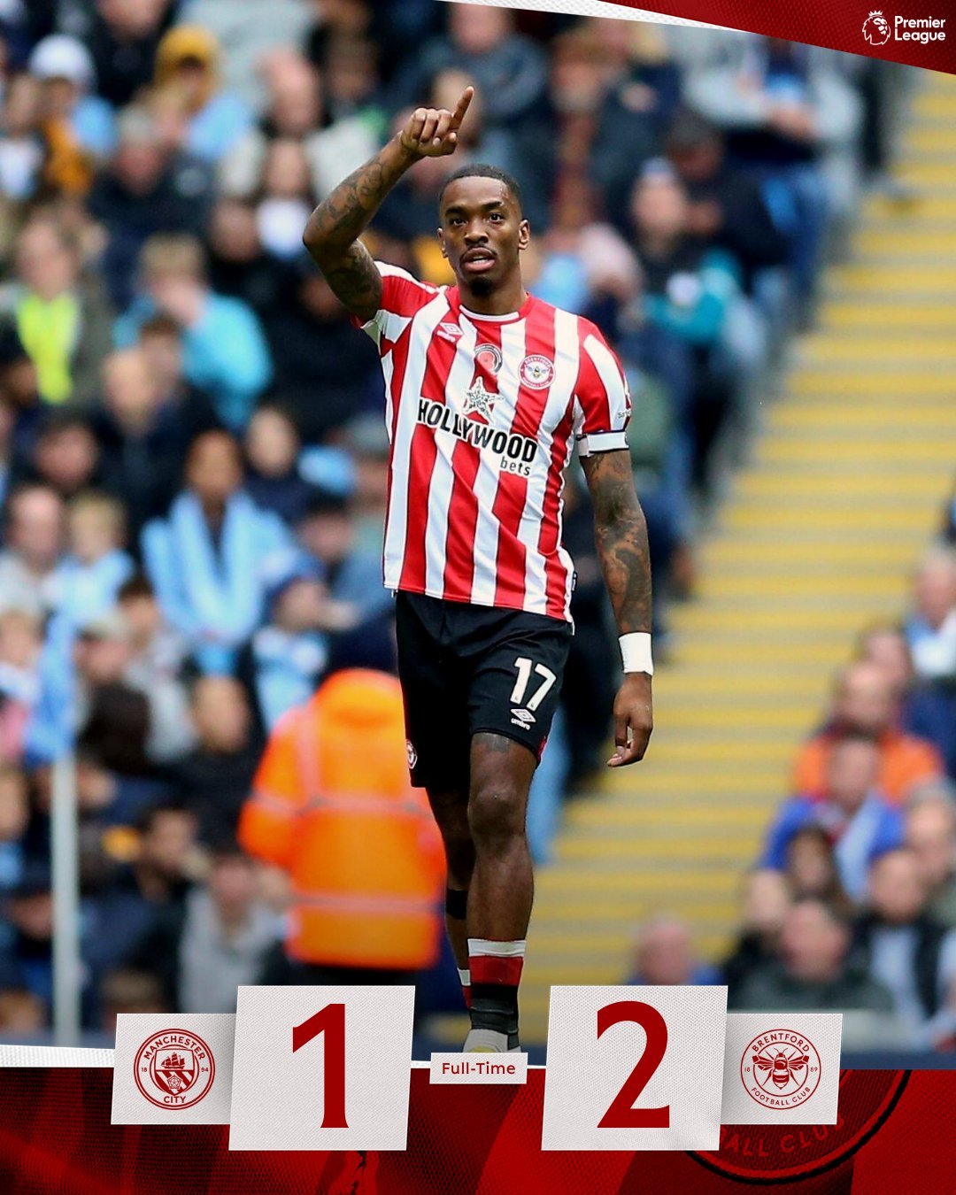 Manchester City missed the chance to move to the Premier League summit as Pep Guardiola’s champions signed off ahead of the World Cup with a shock 2-1 loss against Brentford at Etihad Stadium.