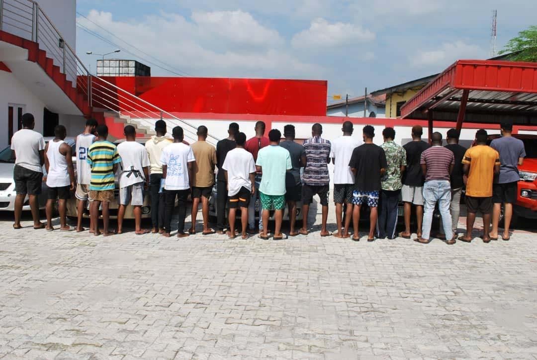 The suspects were arrested in a sting operation at Rivtaf Golf Estate, Port Harcourt following intelligence on their alleged internet fraud-related activities including dating/romance scam, investment scam, oil scam, contract scam, impersonation, business scam, possession of fraudulent document, crypto currency scam and forgery.