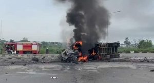 “The fire has been extinguished but the area is dangerous because gas is still flowing. Motorists are therefore advised to take alternative routes to avoid further accidents.”