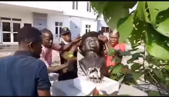 The enraged young people also brought down posters and signs featuring Wike and the former Chairman of Obio/Akpor Local Government Area, Bar George Ariolu. In a video posted on a social platform while the protest was on, three youths were seen struggling to drag the statue down.