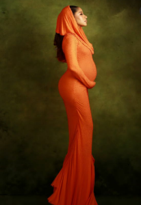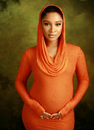 Dressed in a vibrant orange sequined dress with a stylish hood—an outfit she proudly mentioned she styled herself—Adesua radiated joy as she cradled her baby bump. Her post, filled with love emojis, reflected the couple’s journey and the excitement of expanding their family.