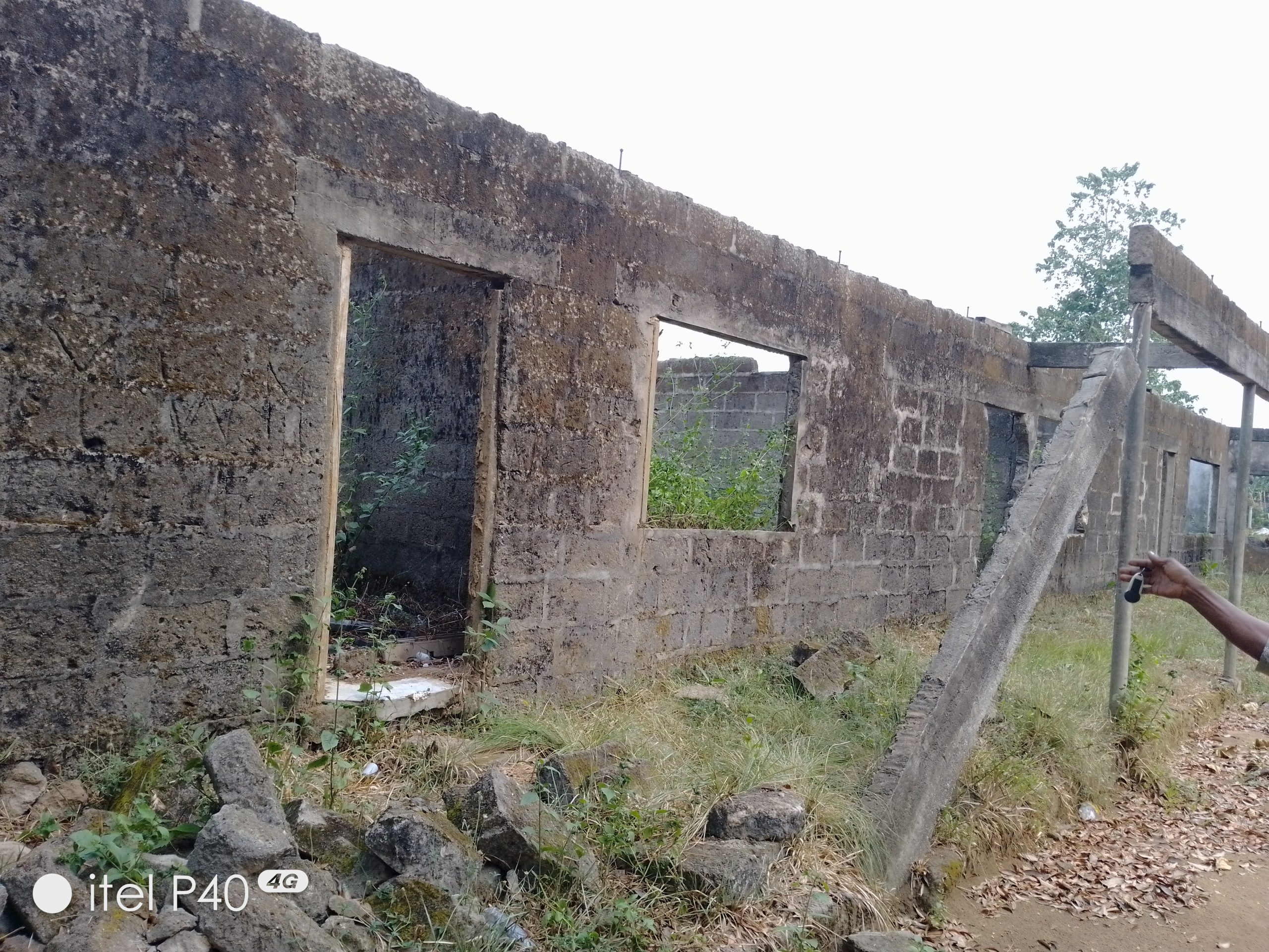 The school has an abandoned uncompleted building identified as the school laboratory, and is without roof, doors, or windows, rather grasses have overtaken the entire space.