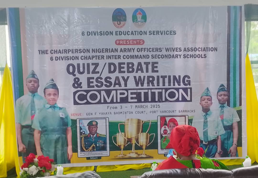 Major General Emekah also applauded the Nigerian Army Officers’ Wives Association (NAOWA), 6 Division Chapter, for initiating the competition. He noted that the initiative aligns with the vision of the National President of NAOWA, Mrs. Meman Femi-Oluyede, to inspire academic excellence among young students.