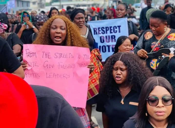 On April 11, 2025, hundreds of women in Rivers State marched toward the State Government House in Port Harcourt, demanding the reinstatement of Gov. Siminalayi Fubara, the lifting of a state of emergency, and a return to democratic governance, according to a post on X.