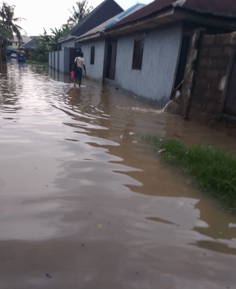 “For me ooo, the solution is to channel the water well, that’s all. The road is higher than all the compounds, houses and shops, the drainage too is too high, so, it takes time before water will find way out.