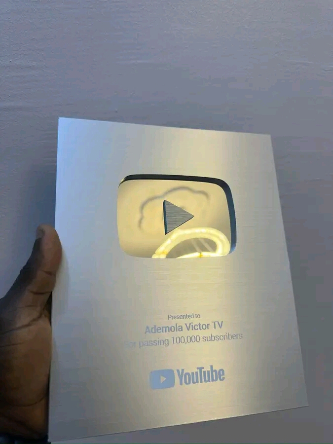 Demola Victor TV, a well-known sports media personality, has just hit an incredible career milestone—crossing 100,000 subscribers on YouTube. To mark the occasion, he proudly unveiled his YouTube Silver Play Button plaque, capping off an inspiring journey from modest beginnings to becoming a leading voice in sports content creation. Today, his channel stands strong with 104,000 subscribers and an impressive library of 1,200 videos.