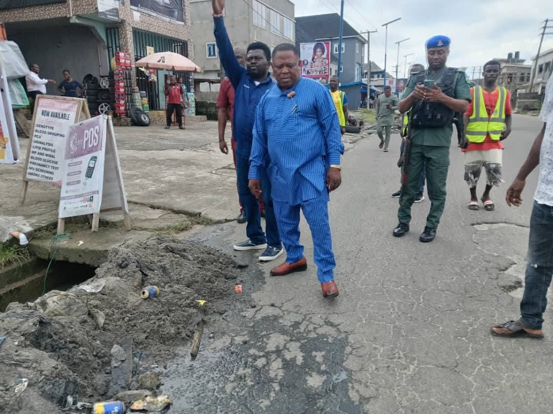 ‎During an on-site inspection, Dr. Walter, accompanied by the Chairman of the Environmental Sanitation Committee, Chief Kennedy Akaninwa, expressed concern over the magnitude of blocked drainage systems and the resultant environmental hazards.