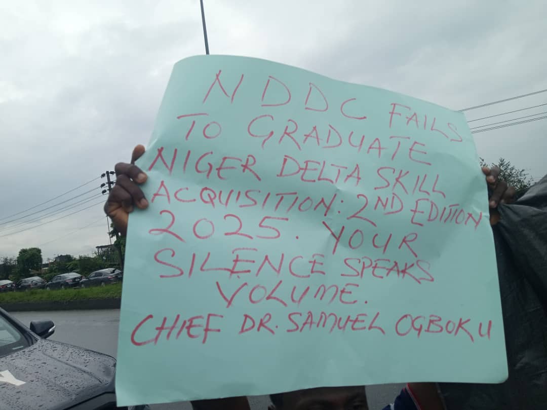 The protesters, who were said to be trainers and trainees of a 3-month skills acquisition programme organised by a religious organisation, Victorious Prayer Network, accused the NDDC of not fulfilling its promises of sponsoring the training and providing a starter pack to the over 2,000 beneficiaries.