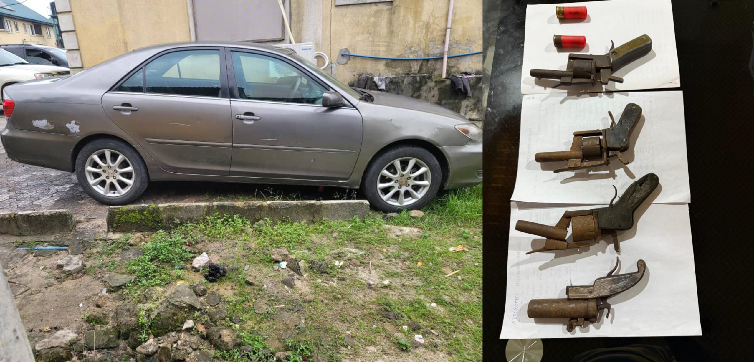 Items recovered from the suspects include: One MTN SIM card, four locally made pistols, seven rounds of 9mm ammunition, two live cartridges, one mini bus, one Toyota Camry.