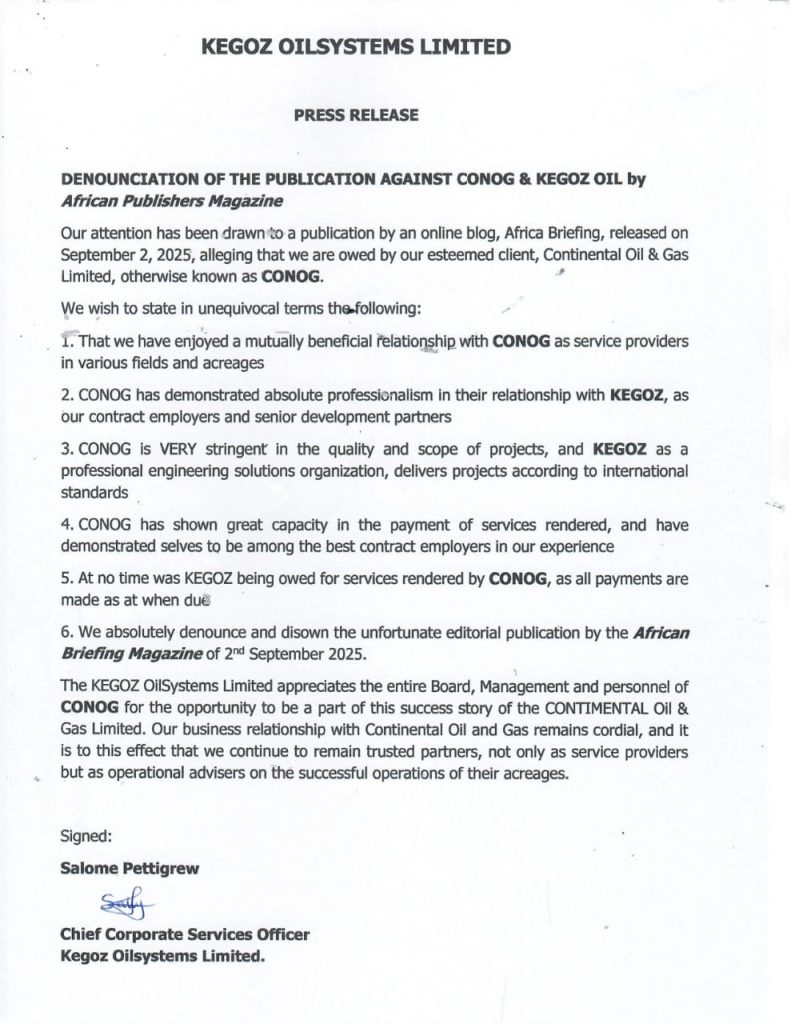 KEGOZ OilSystems Refutes Allegations, Reaffirms Integrity of CONOG Relationship