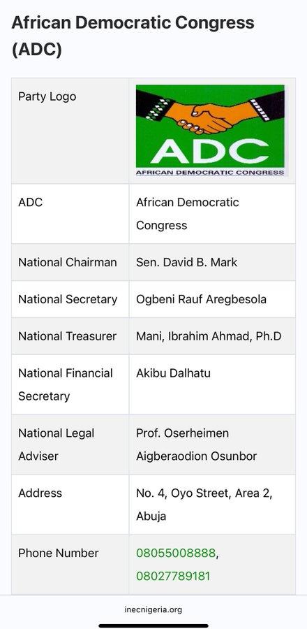 The Independent National Electoral Commission (INEC) has recognised the new leadership of the African Democratic Congress (ADC). This recognition effectively ended a long-standing power struggle within the opposition party.