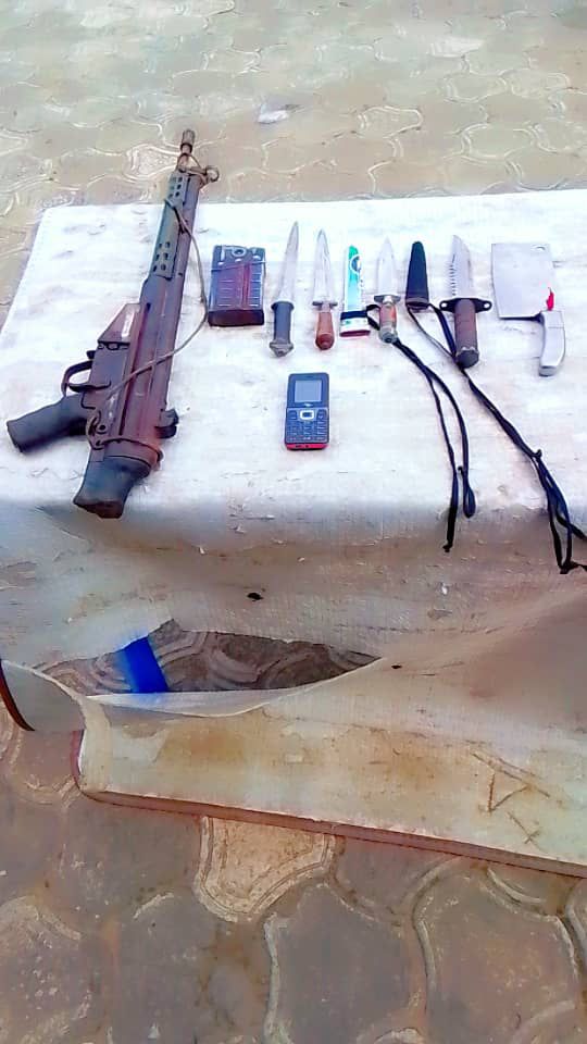 Items recovered from the suspects include: One G-3 rifle with breech number 10398, one magazine, and one Itel phone belonging to victim Humphrey Wagbara. Three short daggers, one jackknife, one stainless short knife.