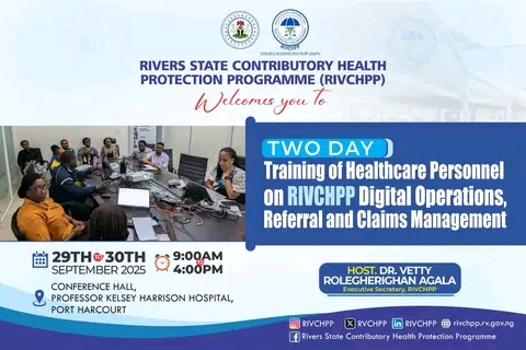 The Rivers State Contributory Health Protection Programme (RIVCHPP) launched a 2-day training program for healthcare personnel at Prof. Kelsey Harrison Hospital in Port Harcourt, led by Dr. Vetty Agala, to equip healthcare workers with smarter tools for better, faster, and more accessible healthcare services. The program started yesterday, September 29, and will end today, September 30th, 2025.