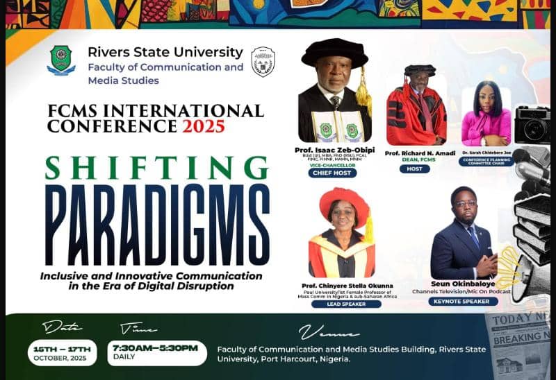 The Faculty of Communication and Media Studies (FCMS) at Rivers State University (RSU) has announced plans to host its first International Conference, themed “Shifting Paradigms: Inclusive and Innovative Communication in the Era of Digital Disruption.”
