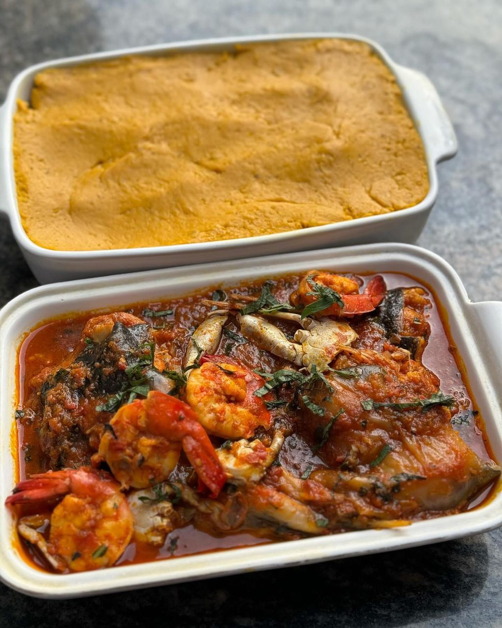 1. Season the fish and crab with dry pepper and seasoning cubes, then allow to marinate for about 20 minutes.