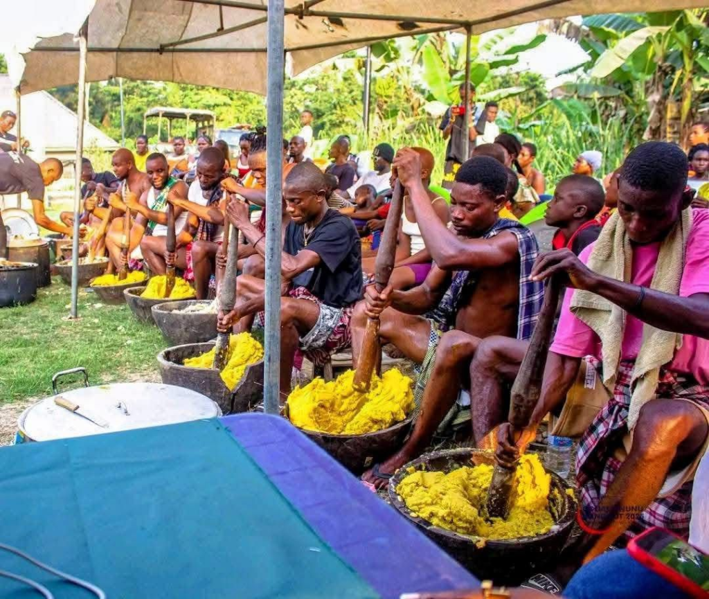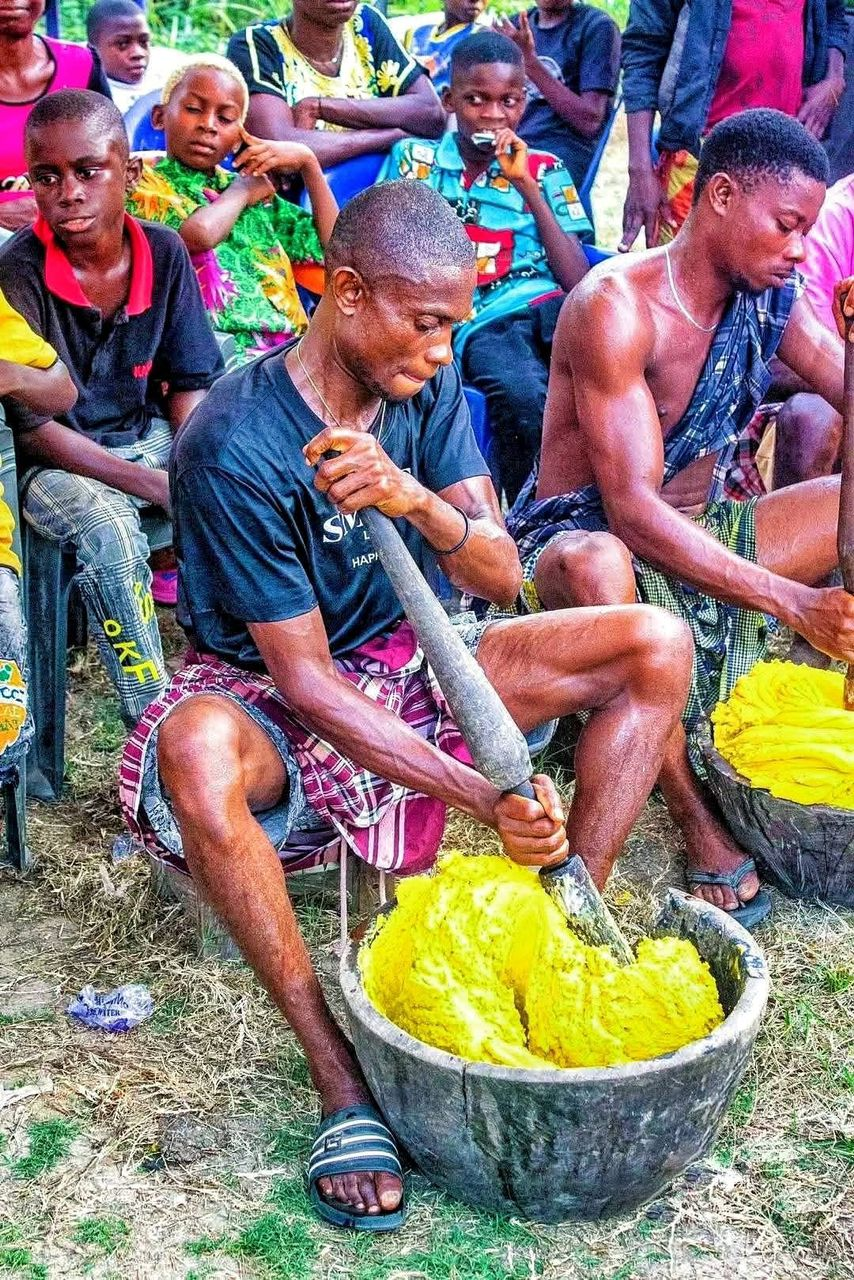 Onunu is a cherished traditional dish from Rivers State, Nigeria, predominantly enjoyed by the Ijaw ethnic group. This vibrant meal combines simplicity, culture, and rich local flavors. It is prepared by boiling yam and ripe plantains together, then pounding them into a smooth, soft blend mixed generously with palm oil. The result is a golden, slightly sweet, and savory delicacy often served with spicy fish pepper soup or fresh fish stew, both of which enhance its unique taste and texture.