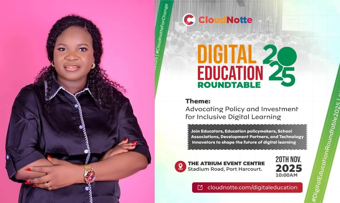 All is set for the Cloudnotte Digital Education Roundtable 2025, scheduled for November 20th and starting, 10 am at the Atrium Event Centre, Port Harcourt. The event will advocate for policies and investments to advance inclusive digital learning for Nigeria’s future.