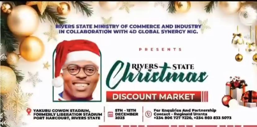 The Rivers State Ministry of Commerce and Industry, in partnership with 4D Global Synergy NIG, has announced that this year’s citywide discount fair will run from December 5th to December 15th, 2025, offering Port Harcourt residents a rare chance to shop essential goods at significantly reduced prices during a period of intense economic pressure.
