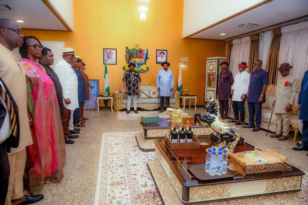 Rivers State Governor, Sir Siminalayi Fubara, on Sunday led a high-powered delegation to the Bayelsa State Government House in Yenagoa to commiserate with his counterpart, Senator Douye Diri, over the sudden death of Deputy Governor, Senator Lawrence Ewhrudjakpo.