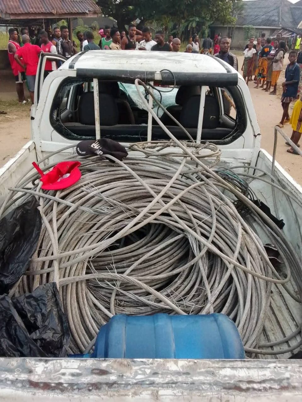 Down in Odiereke Ubie, a small spot in Ahoada West, Rivers State, folks didn’t sit idle when they spotted trouble. Local youths grabbed hold of Divine Bassey, a guy alleged to be working for the Port Harcourt Electricity Distribution Company, or PHED, right in the middle of what looked like a heist. He was supposedly stripping cables off 16 poles and a couple of transformers, with two buddies who bolted when things heated up. Pictures show him roughed up, still in his company uniform, next to a truck crammed with those pilfered wires. It’s the kind of scene that makes you shake your head at how trust gets broken.