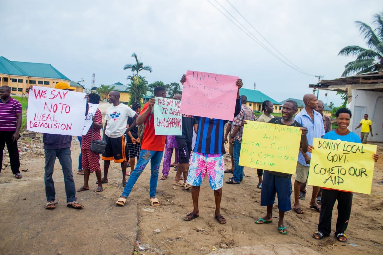 The residents carrying placards with inscriptions such as “NNPCL Don’t Demolish Our Properties”, “We Say No To Illegal Demolitions”, “We Say No Illegal Land Grabbing”, among others sang and marched around the community.