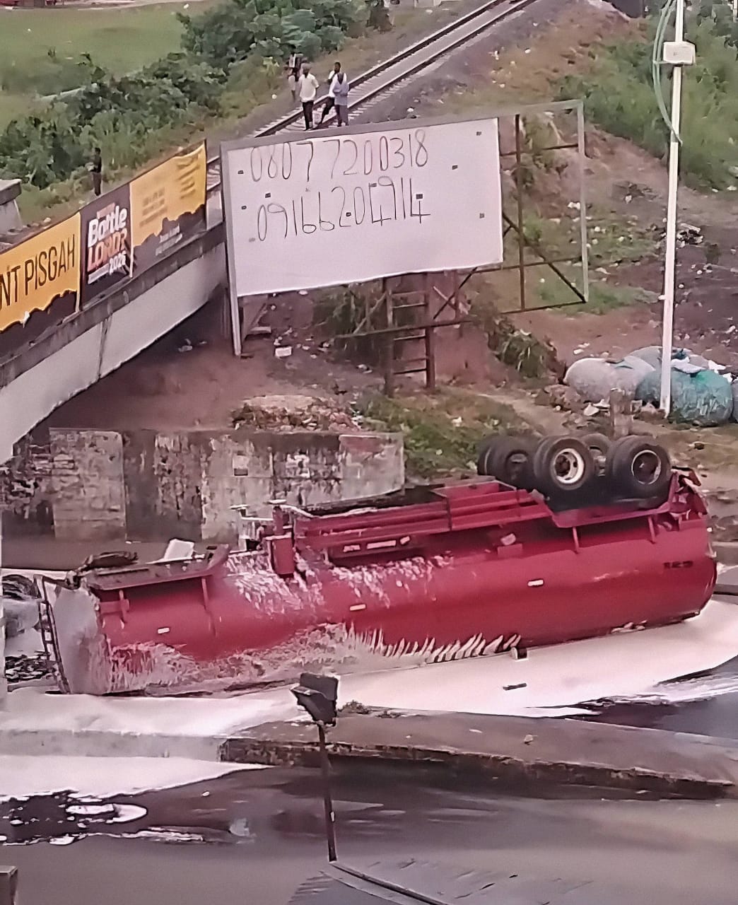 The truck, reportedly carrying 33,000 liters of Premium Motor Spirit (PMS), lost stability while navigating the junction, leading to a localized spill that raised immediate fears of a repeat of the catastrophic Eleme tanker explosions of previous years.