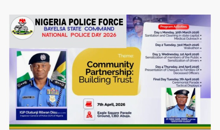 The commemoration of the 2026 National Police Day is on top gear as the Bayelsa State Police Command announced a week-long series of activities to mark the Day which is aimed at strengthening community engagement and public safety across the state.