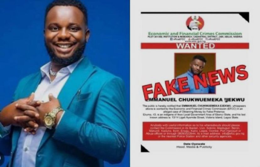 EFCC stamped the circulating poster with “FAKE NEWS” and issued a direct warning to those responsible: