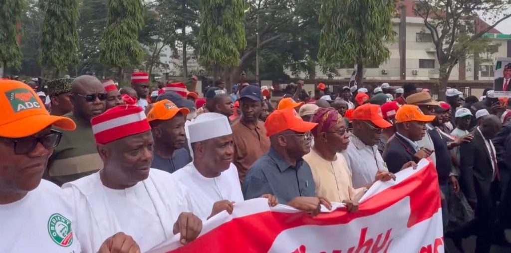Prominent figures of the African Democratic Congress (ADC) took to the streets of Abuja on Wednesday to protest after the Independent National Electoral Commission (INEC) withdrew recognition of the party’s National Working Committee (NWC). The move by INEC saw the removal of names, including National Chairman David Mark, National Secretary Rauf Aregbesola, and other senior […]