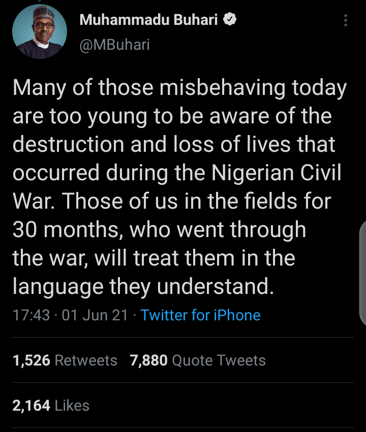 Twitter deletes Buhari’s tweet threatening Igbos with genocide