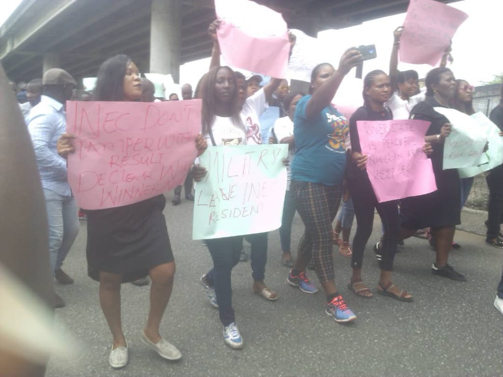Protesters ask INEC to declare Wike winner of March 9 guber election.