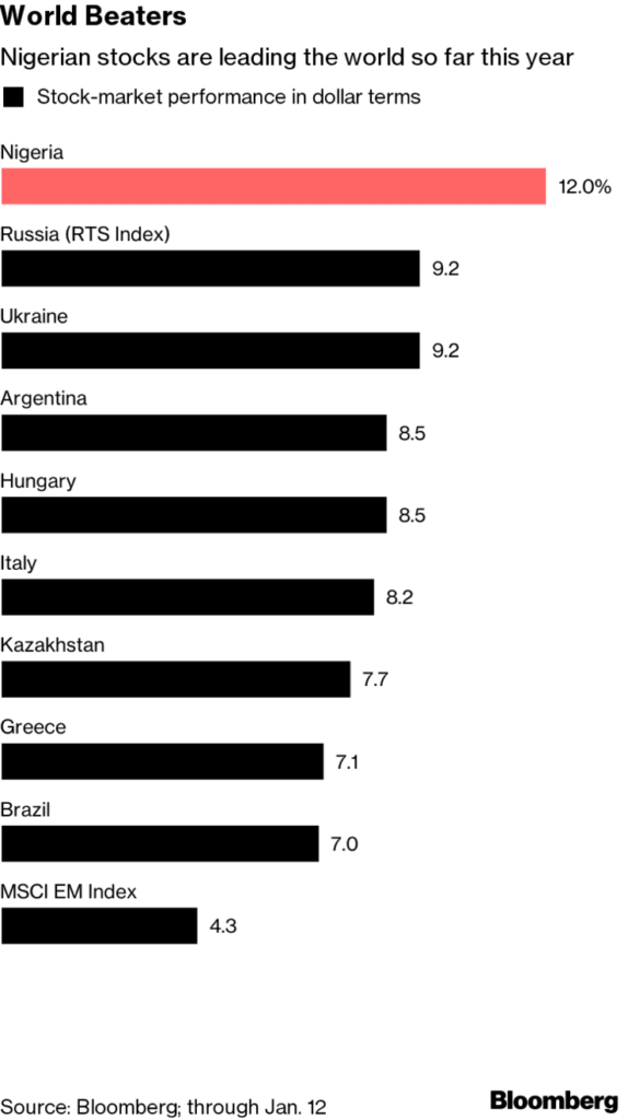 The world-beating rally in Nigerian stocks may not be over yet. The main equity index in Africa’s biggest economy has surged 12 percent this year in dollar terms, the most among 96 major bourses tracked by Bloomberg, pushing it to the highest level since 2008. Dangote Cement Plc, controlled by Africa’s richest man, Aliko Dangote, […]