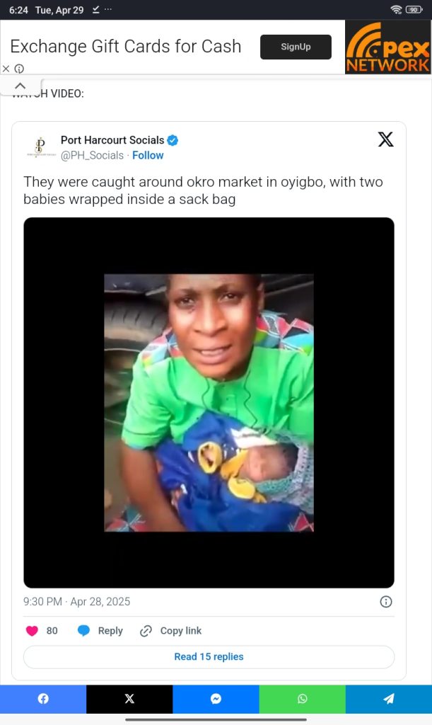 A woman was caught at Okro Market in Oyigbo, Port Harcourt, with a baby hidden in a bag. A video shared on social media shows the woman surrounded by a crowd questioning her. The footage reveals the baby inside the bag, sparking widespread attention and varied reactions online. Some users expressed doubts about the effectiveness […]